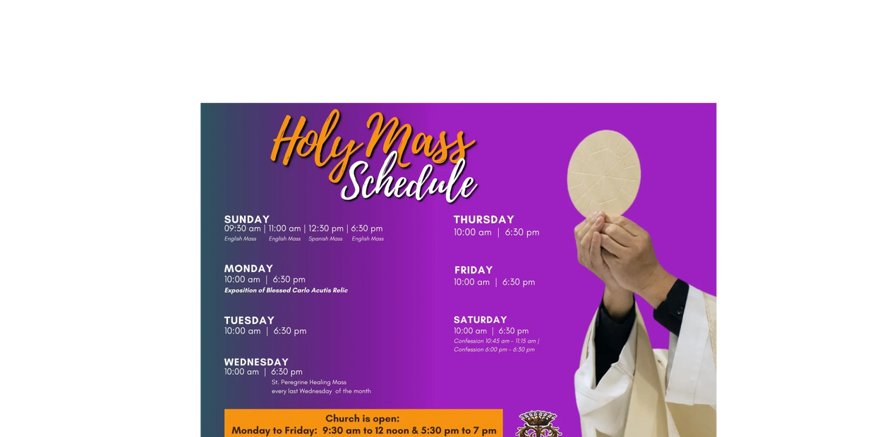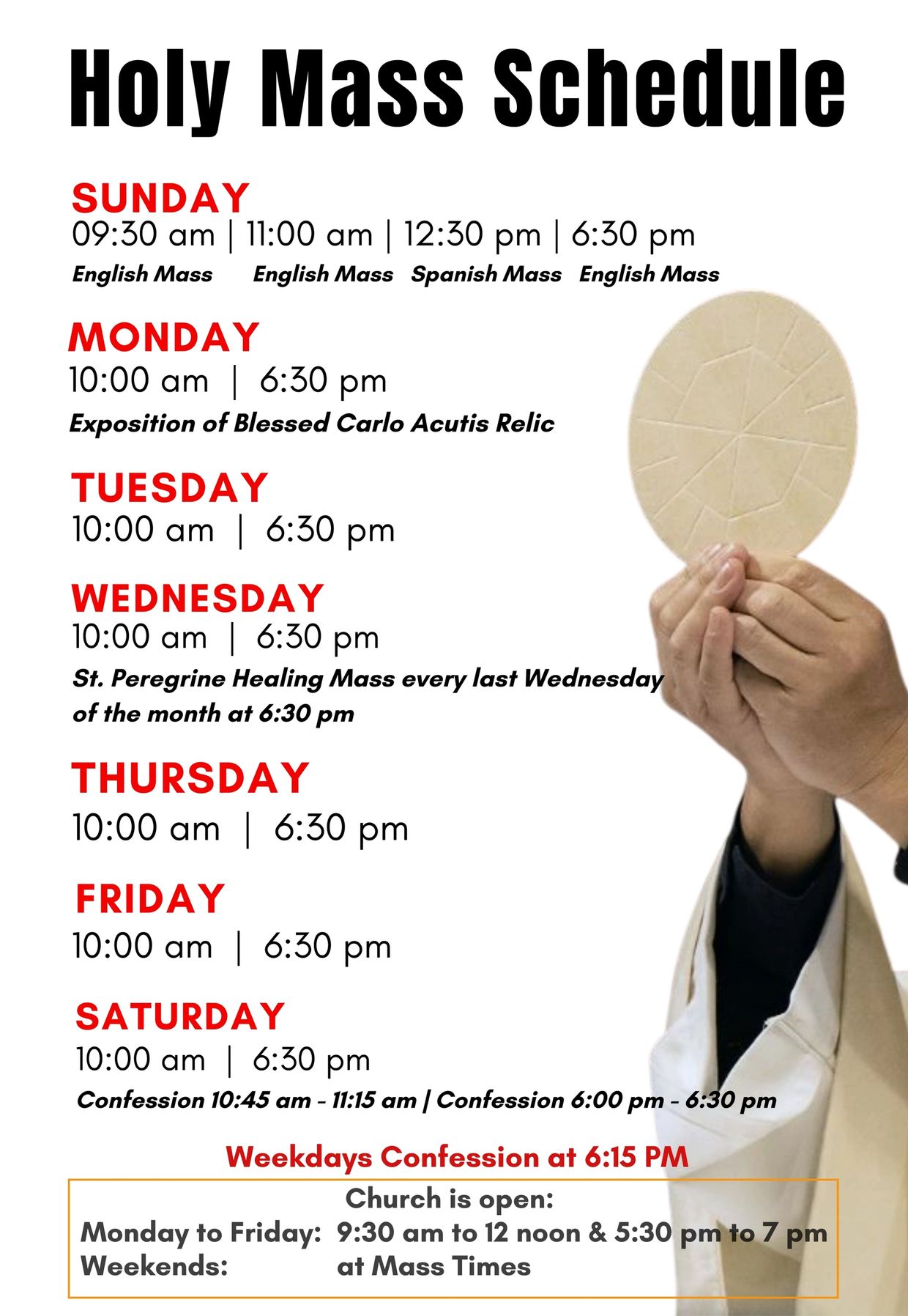 On Weekdays (Monday to Friday) 10:00 am No Evening Mass